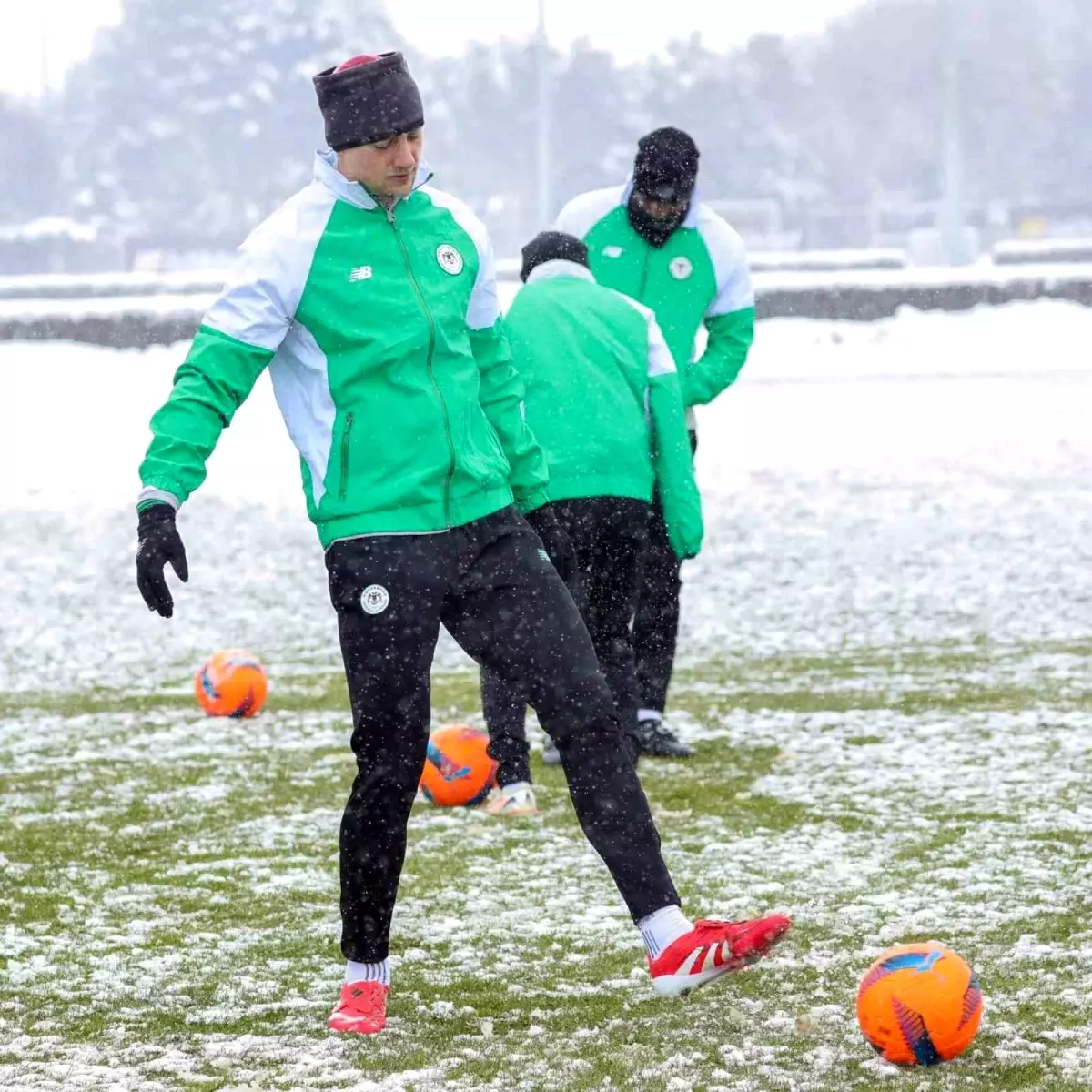 Teknik Direktör Recep Uçar ve yardımcı antrenörler yönetiminde Kayseri Recep Mamur Tesisleri’ndeki antrenman yoğun kar yağışı altında gerçekleşti. Antrenman, koşu ve ısınma ile başladı. 5’e 2 ile devam eden idman, 10’a 10 oyun ile sona erdi.