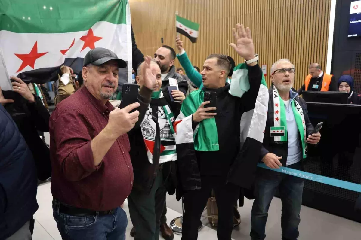 THY’nin 13 yıl sonra gerçekleştirdiği ilk uçuşla yıllar sonra ülkelerine dönen Suriyeliler, gözyaşları içerisinde özgürlük şarkıları söyledi.